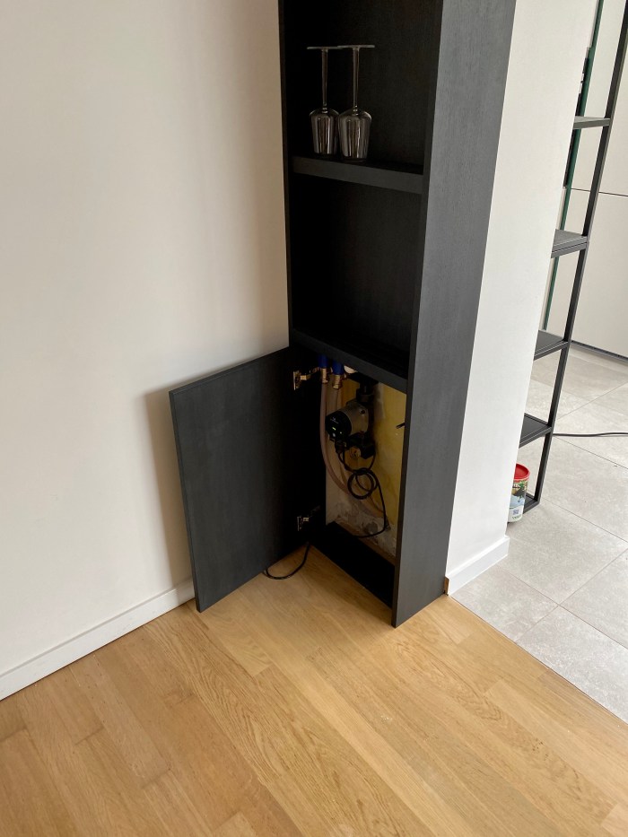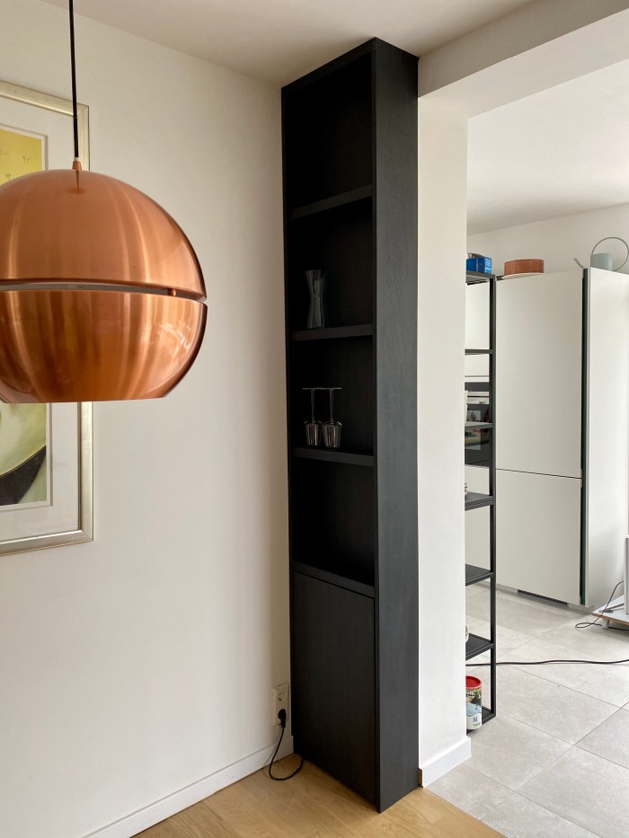 Check out my latest addition! This sleek floor-to-ceiling cabinet with a charcoal finish makes the most out of those little nooks in the corner. Great for displaying your showpieces and the perfect hiding spot for a floor heating system