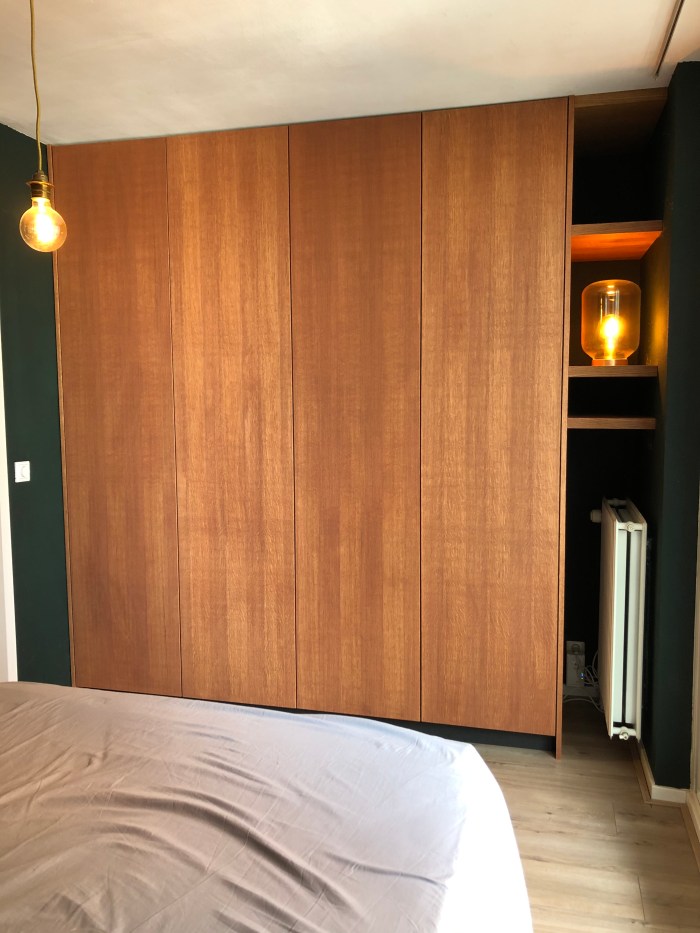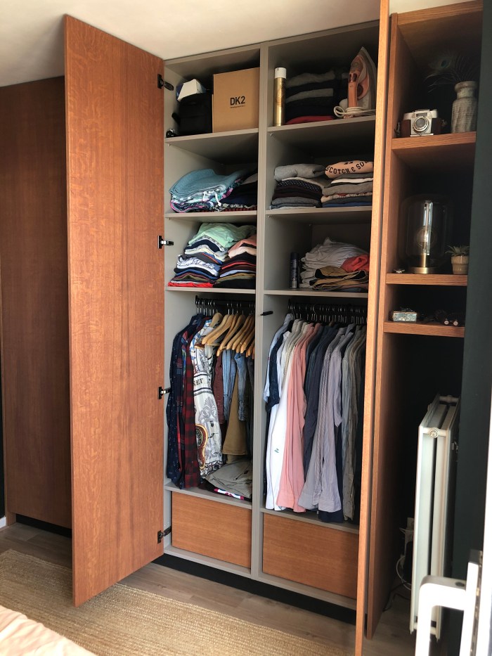 A great way to keep that warmness in a bedroom whilst also having a place to store all your clothing and hide some of that clutter..